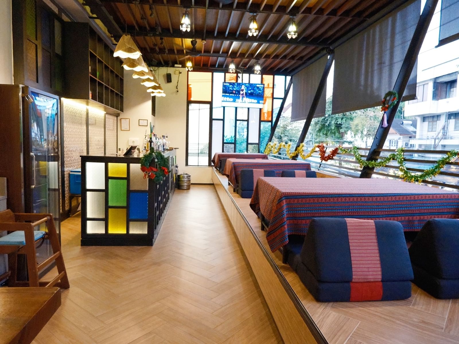ห้องอาหาร EAT ของเราในจังหวัดเชียงใหม่ แขกผู้เข้าพักจะได้ลิ้มลองรสชาติของอาหารแนวใหม่ในรูปแบบบริสโต พร้อมเสิร์ฟทั้งอาหารเช้า กลางวัน และมื้อเย็น แขกที่เข้าพักยังจะได้ลิ้มลองอาหารไทยพื้นเมืองอันมีชื่อ ที่มีรสเผ็ดและอาหารจำพวกแกงแสนอร่อยของเรา นอกจากนี้แล้วคุณยังสามารถแจ้งให้เชฟทราบถึงความประสงค์ของคุณว่าต้องการให้เชฟปรุงอาหารของคุณแบบไหน เพื่อให้ทุกจานที่เสิร์ฟลงบนโต๊ะของคุณนั้นเป็นอาหารในรูปแบบ และรสชาติที่คุณต้องการ ห้องอาหารของเราเปิดให้บริการทั้งวัน ตั้งแต่มื้อเช้า กลางวันและมื้อค่ำ