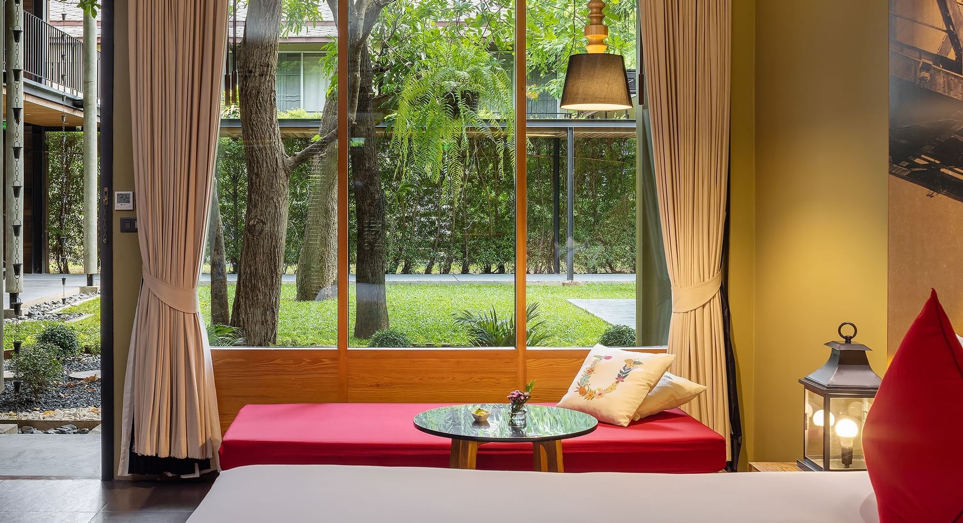 Discover our charmingly appointed Deluxe Garden View at our U Inchantree Kanchanaburi hotel are designed with modern comfort and featured picturesque views of the courtyard greenery.